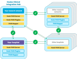 Der Healex Clinical Integration Hub (CIH) bietet die Errichtung bzw. Vernetzung von telemedizinischen Netzwerkinfrastrukturen von Krankenhäusern untereinander oder von Krankenhäusern und ambulanten Einrichtungen oder Forschungseinrichtungen. Basis ist ein FHIR Server, sowie die Healex Mapping Engine, die eine Bereitstellung und Vernetzung von strukturierten Gesundheitsdaten ermöglichen. Eine Anbindung an die Telematikinfrastruktur kann über die sichere FHIR-Infrastruktur des CIH umgesetzt werden.