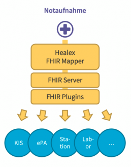 Die Anbindung an die Telematikinfrastruktur wird durch die FHIR-Infrastruktur des Healex Clinical Integration Hubs (CIH) ermöglicht. Das Healex Clinical Documentation System (CDS) ermöglicht eine hochverfügbare Bereitstellung der klinischen Dokumentation über vielfältige Zugriffswege (Web, Brückenkopf oder lokale Spiegelung).